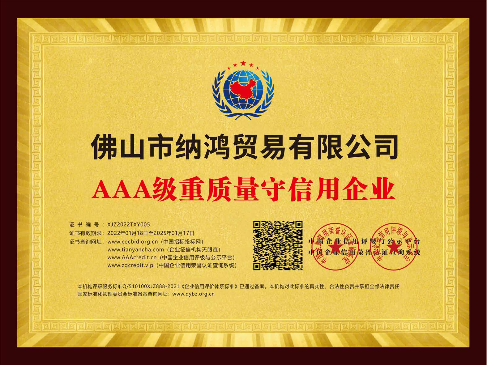 AAA級重質(zhì)量守信用企業(yè)